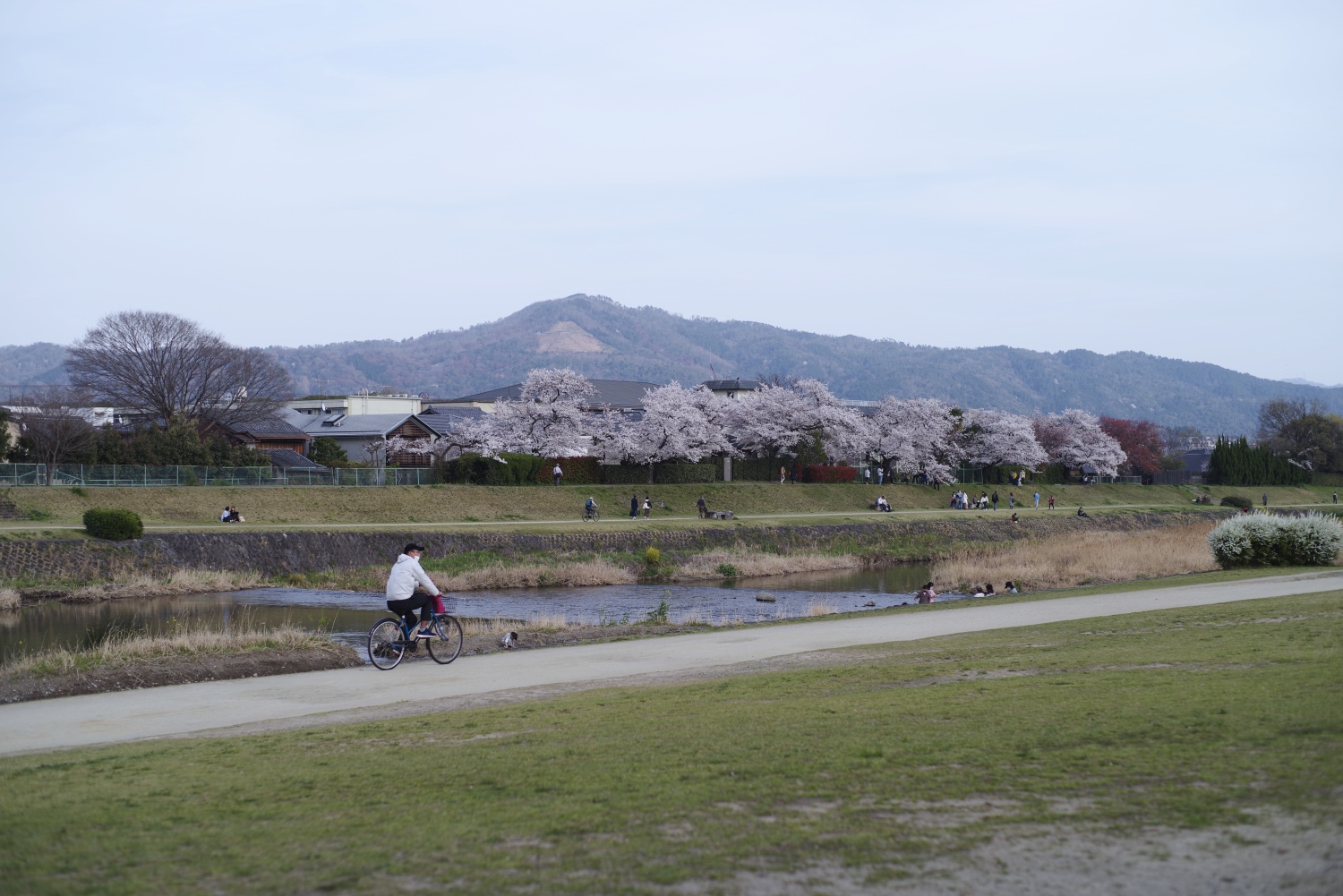 鴨川の河原で、アタリのルールをアタマで思い出しながら人に伝え、かたわら、初学入門の荒城の月やらさくらやらを吹いた。外で吹くのは去年の5月以来、先生竹をお外に連れ出すのは初めてだ。そして、こんなに吹けないとは、この竹が風にこれほど弱かったとは、と大いに驚く。