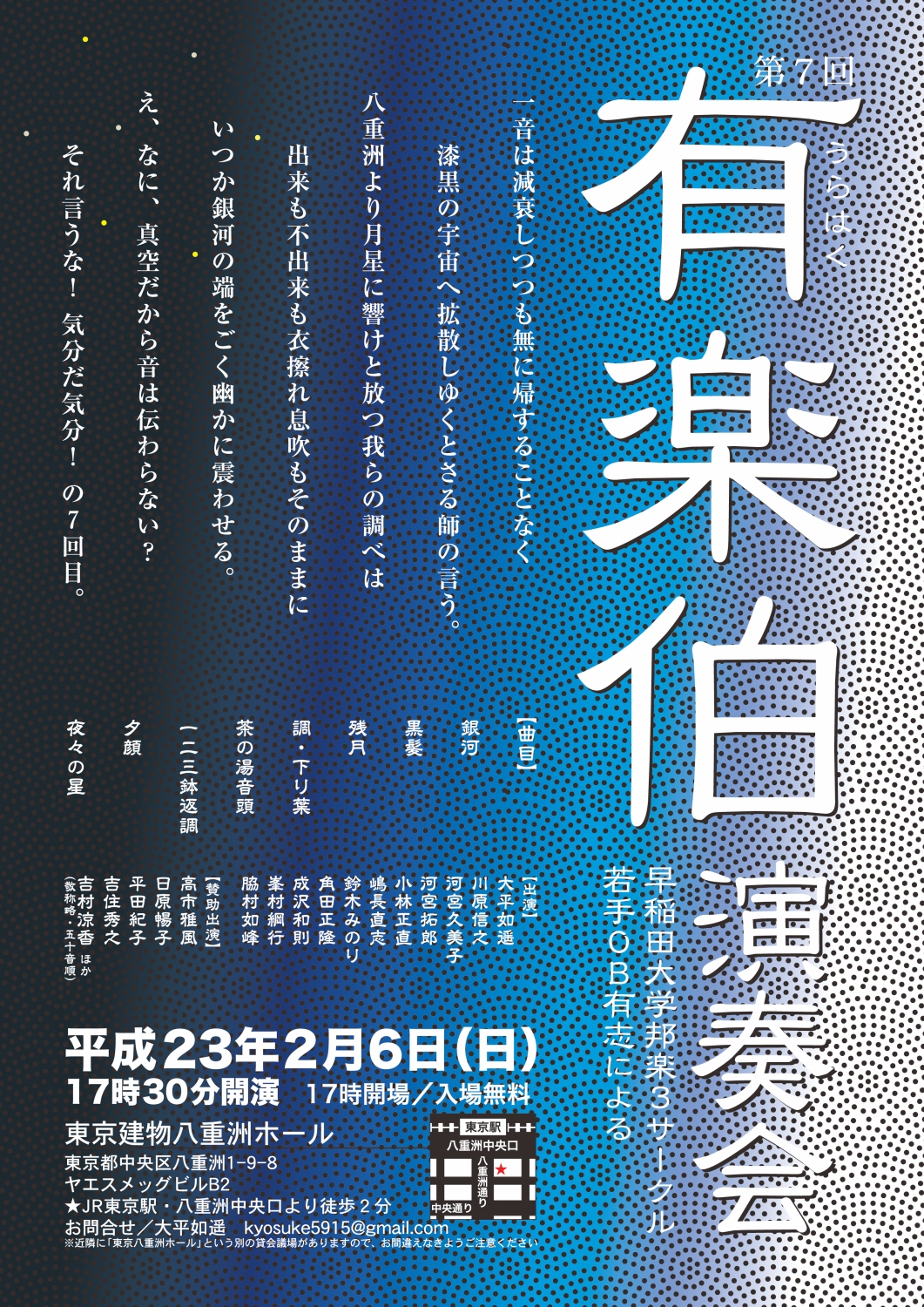 というわけで、主に自らを鼓舞するため、第1・2・4・5・7回有楽伯で私が素案を担当したチラシから、リードコピーをセルフ引用する。