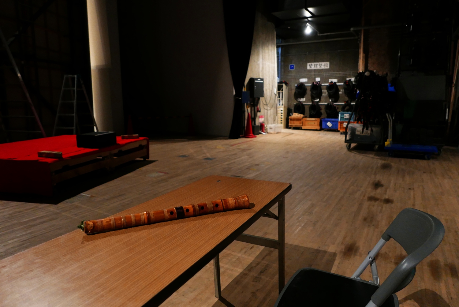演奏10分前。この画ヅラ、イスさえ丸かったら「氷の世界」の楽屋やん!とソレっぽく撮ってみたのだが、あとで確認すると、かのジャケットの構図は全然こうじゃなかった。